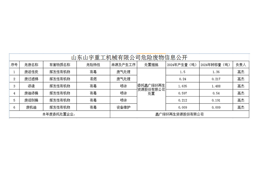Shandong Shanyu Heavy Industry Machinery Co., Ltd. Раскрытие информации об опасных отходах